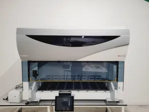 The Tecan Fluent 780 Robotic Liquid Handler, a 2021 model, was decommissioned from a university laboratory where it was no longer needed. This equipment is in excellent cosmetic condition and powers on successfully, although further testing was not performed at our premises. According to the previous facility, the system was operationally sound before removal. The accompanying software is not provided. Key features include an eight injector head and 40 plate holders. Accessories include a Winmate R12L100-PCM2 monitor (30cm viewing), a power supply unit, USB cables, and an HP mouse.