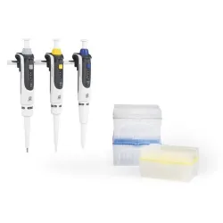 The BrandTech Scientific Transferpette S Standard Pipette Starter Kit, 0.5 to 1000ul delivers precision, comfort, and efficiency for a variety of laboratory liquid handling tasks. This adjustable air displacement pipette set includes models D-10 (0.5 to 10 ul), D-100 (10 to 100 ul), and D-1000 (100 to 1000 ul), offering flexibility for a wide range of applications. Designed with ergonomics in mind, the Transferpette S provides a comfortable and secure grip for both right- and left-handed users, reducing hand fatigue during extended pipetting sessions.