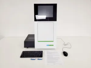 The Perkin Elmer LabChip GX Touch HT Automated Bioanalysis System, ideal for high-throughput laboratories, offers efficient and precise bioanalytical capabilities. Previously used in a university setting, this system is in fair cosmetic condition and fully powers on. Although further testing cannot be conducted at our facility, the unit requires no password for operation. This comprehensive system includes a wireless keyboard, a wired mouse, and two USB ports with software, ensuring seamless automation and analysis for research professionals.