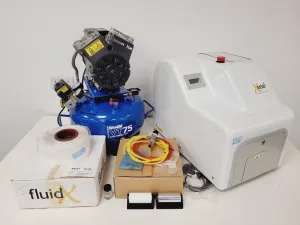 The FluidX X-Seal AAS Automated Adhesive Sealer, paired with the Bambi VT75 Compressor, is a precision system designed for laboratory environments. Originally sourced from a university setting, this equipment is surplus to their requirements but remains in excellent working condition. On start-up, the X-Seal AAS performs all self-checks successfully and is fully functional when integrated with the Bambi compressor. Tested to a pressure of 120 psi, the Bambi VT75 Compressor is in almost new condition, ensuring optimal performance.