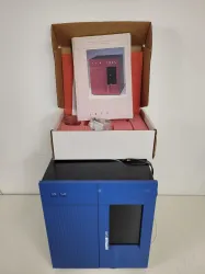 The Eco Chemie AutoLab SPR Biosensor Instrument, complete with accessories, was decommissioned from a university laboratory due to redundancy. The unit is in good aesthetic condition with minor use-related marks and is functional, as it powers on. However, it has not undergone extensive testing. Accessories include a detector test report, a specifications brochure, a curved mirror (L120-5208), a plastic/rubber bung, a black foam O-ring, and a selection of Allen keys (0990-7918, 0990-7297, 0990-7928, 0990-7917). The package also features three bags of screws (0000-2678, 0000-3465, 0499-4450), six washers (0000-3109, 0000-2687), three ball bearings (0497-3103), a metal plate (L120-2056), and a plastic syringe (0494-3036).