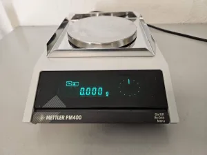Mettler Toledo PM400 Precision Balance Weighing range: 0 to 410 g Readability: 0.001 g Reproducibility: 0.001 g Linearity: ± 0.002 g Weighing platform: 130 mm Dimensions (WxDxH): 194 x 316 x 68 mm Weight: 3.8 kg Supplied as shown
