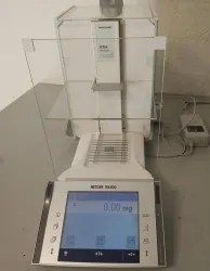 Mettler Toledo XP205 delta range analytische balans Specifications: Maximum Capacity: 220 g Readability: 0.01 mg Minimum weigh (typical acc. USP): 21 mg Minimum weigh (typical, U=1%, sd=2): 1.4 mg Taring range: 0…220 g Repeatability: 0.015 mg / 0.05 mg Linearity: 0.15 mg Eccentric Load: 0.25 mg Adjustment with internal weights: proFACT, fully automatic time- and temperature-controlled adjustment Adjustment with external weights: custom weights Sensitivity offset: 2.5×10-6·Rnt Sensitivity temperature drift: 1×10-6/°C·Rnt Sensitivity stability: 1×10-6/a·Rnt Settling Time: 1.5 s Interfaces: RS-232C Dimensions: 263x487x322 mm (WxDxH) Usable height of draft shield: 235 mm Size of weighing pan: 78 x 73 mm Met automatische deuren. In goede staat, enkel rechter deurknop afgebroken. Geleverd als afgebeeld, getest met kalibratiegewichten als afgebeeld, niet verder getest.