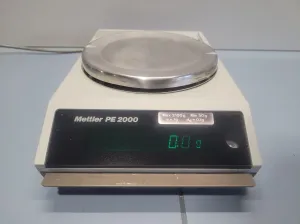 The Mettler Toledo PE2000 Precision Balance is a sophisticated laboratory instrument designed to facilitate accurate weight measurements with a maximum capacity of 2100g and readability of 0.1g. The model PM 2100 is equipped with features such as a tare range of 410g, reproducibility of 0.05g, and a linearity of ±0.15g. The weighing pan measures a convenient 17 cm in diameter, and the overall dimensions of the balance are 19.5 x 32 x 6.5 cm. This device has been tested and proven to be in good working order, though it does show some signs of wear on the plastic components. Suitable for precise scientific applications, this balance is a reliable addition to any laboratory setting.