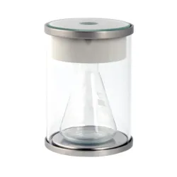 Evaporation ring is an integral part of the adapter that increases relative humidity inside the weighing chamber. With this evaporation of the liquid during calibration/verification is stopped. An integrated weighing pan enables centric loading of the vessel in the weighing chamber. The weighing pan and the vessel are housed in a glass chamber featuring an opening allowing the user to dispense liquid through it, and reducing air drafts.