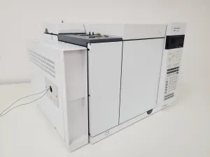 The Agilent 7890A GC System, model G3440A, was previously in use at a university laboratory. Although it was surplus to that lab's requirements, it retains its functionality. The system exhibits average cosmetic wear, with some marks and scratches, and powers on without issue. However, it remains untested further as it lacks a PC and software. The previous owner reports no known faults, though it's been inactive for several years and likely requires recommissioning.