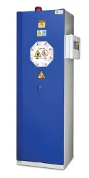 The cabinet is equipped with an automatic fire suppression system, crucial for minimizing potential fire hazards and damage. It efficiently detects fire, triggering the release of extinguishing agents to neutralize dangerous substances like Hydrogen fluoride (HF).