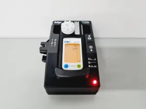 The Dräger X-am 5100 Gas Analyser is a sophisticated analytical tool, once part of a university's equipment inventory, now available in surplus. It is pristinely maintained and in excellent cosmetic condition, capable of powering on. Please note, further testing is not feasible at our facility. This unit comes with a convenient charging dock and diverse plug fittings, including Type E, Type I, and Type A, ensuring compatibility with various electrical outlets. This robust instrument is ideal for precise gas analysis in laboratory or field environments.