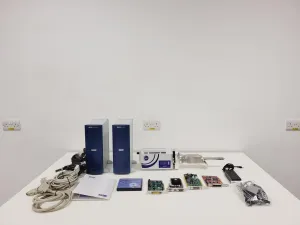 The Oxford Instruments INCAx-Act Energy Dispersive Spectrometer System is a high-precision tool initially used within a university setting, currently available as surplus. Though it remains untested in our facility, it powers on and appears in excellent cosmetic condition, previously installed on a Philips XL30 SEM TMP system. The package comprises the INCAx-act model 51-ADD0082 sensor 51-1385-046, INCA MICSF+ (ASSY: 51-G-1100-149), and INCA x-stream 2 (ASSY: 51-G-1100-131), all powered by the included PSU. Included are four PCI interface cards presumed to be from the original PC, with various essential cables. Additional materials encompass manuals, software, and educational content such as the 'The Principles and Practice of X-ray Microanalysis' CD Rom, installation binders, keys, drivers, and USB recovery drives to support users in setup and recovery tasks.