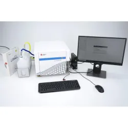 The device runs on 100-240 V, with a power consumption ranging from 150-250 W. Compact and robust, it measures 42.5 cm x 42.5 cm x 34 cm and weighs 23.4 kg. This fully functional system has been tested and is ready for immediate use, complete with computer and dongle for seamless integration into your laboratory workflow.