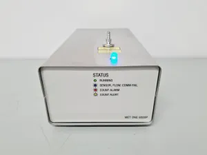 The Beckman Coulter MET ONE 6000P 6015 Remote Airborne Particle Counter is a precision instrument designed for highly accurate monitoring of airborne particles. Originally surplus to requirement from a university, this device is in good cosmetic condition and successfully powers on. Although functionality testing beyond powering on was not conducted, it is supplied with several accessories, including a Hammond Manufacturing metal lockable case with vent holes (P/N - SP2001942ST161608SS), a Meissner Filtration Products unit (CF2SM0.2-41B1S/N - Z8803254), and a Phoenix Contact KGG-MC 1,5/8 component. It also comes with UK, Euro, and USA power supply cables for versatile usage in various regions. This equipment is ideal for enhancing the precision and reliability of air quality assessments in professional laboratory and environmental settings.