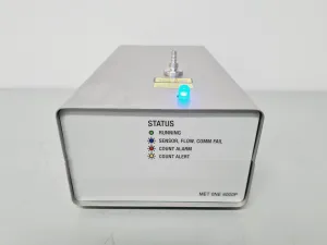 The Beckman Coulter MET ONE 6000P (6015) is a remote airborne particle counter designed for efficient monitoring. Previously utilized at a university, this instrument is now available as it was surplus to requirements. It is in excellent cosmetic condition and successfully powers on, though further testing is not performed at our facility. Included are a Hammond Manufacturing metal lockable case with vent holes (P/N - SP2001942ST161608SS), Meissner Filtration Products (CF2SM0.2-41B1S/N - Z8803278), Phoenix Contact (KGG-MC 1,5/8), and power supply cables compatible with UK, Euro, and USA outlets.