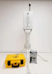 The Turnkey Instruments OSIRIS Environmental Particle Monitor with Tripod Housing was previously utilized in a university laboratory setting before becoming surplus to requirements. It is in operational status and presents a reasonable used cosmetic appearance, although further testing has not been conducted at our facility. The equipment is packaged in a convenient carry case and includes a power supply, USB cable, and various small components and fittings. A software disk is also provided to facilitate data gathering and analysis. The tripod housing height reaches 135 cm, and the last calibration was performed on January 18, 2022.