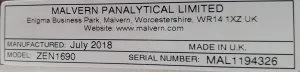 Malvern ZEN1690 Particle Size and Zeta Potential Analyzer 0.3nm–5μm, 2018