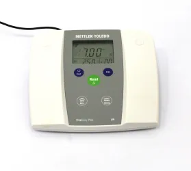 The Mettler Toledo FiveEasy Plus FEP20 Meter is a reliable benchtop pH and mV measurement instrument designed for laboratory analytical applications requiring precise control of pH levels. It supports up to 3-point calibration with four predefined buffer groups, ensuring high measurement accuracy across a pH range of 0.00 to 14.00 with 0.01 resolution and ±0.01 relative accuracy.