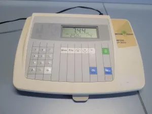 The METTLER TOLEDO MP230 pH Meter is a precise analytical instrument designed for accurate pH, mV, and temperature measurements. It offers an mV measuring range up to 1999 with an accuracy of 1 and a resolution of 1. For pH, it covers a range from 0.00 to 14.00 with an accuracy of 0.01 and a resolution of 0.01, ensuring precise readings in various applications. The temperature measuring range is from -5°C to 105°C, providing a resolution of 0.1°C and an accuracy of 0.5°C, enhancing the versatility of the device. Please note that the electrode is not included with this model.