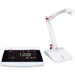 The Ohaus AB41PH-B is a benchtop meter designed to measure pH, oxidation-reduction potential (ORP), and temperature with high accuracy. It features the i-Steward system for consistent measurement accuracy and a 6.5" segment & dot matrix LCD with backlight for clear data visualization. Operation is simplified via a capacitive touch keypad and the meter includes a standalone electrode holder.
