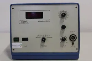 The Schott CG 804 pH Meter, offered as a pre-owned system, is an essential tool for accurate pH measurement and analysis. It comes complete with an electrode, ensuring precise readings across a full pH range of 0 to 14. Additionally, this device is equipped to measure temperatures from 0 to 80°C, making it suitable for a variety of laboratory applications.