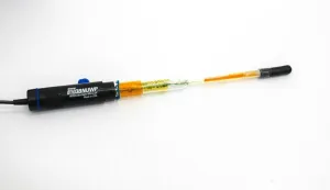 This glass probe is designed for precision pH testing either as part of larger laboratory systems or as a standalone sensor. It exhibits very little wear and maintains excellent functioning condition. No accessories or software are included.