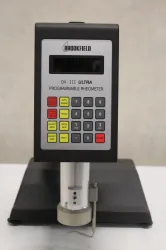 The Brookfield LVDV-III Ultra Cone Plate Rheometer features a speed range with 0.01 RPM increments from 0.01 to 0.99 RPM, and 0.1 RPM increments from 1.0 to 250 RPM for precise control. It provides temperature accuracy of ± 1.0°C within a range of -100°C to 150°C and ± 2.0°C from +150°C to 300°C, ensuring precise thermal management. The device requires a sample volume of just 5 mL and offers a shear rate of 7.5N (sec-1). It boasts a viscosity range between 1 to 3,000 cP with an accuracy of ± 1.0% of the full-scale range and repeatability of ±0.2% of the full-scale range. Its dimensions are 588 mm (max height) x 300 mm (width) x 400 mm (depth), making it a compact and efficient choice for laboratory use.
