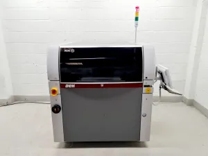 The DEK Automatic Solder Paste Printer Machine, model NEO-Horizon 01iX, is a precision instrument designed for high-performance printing in laboratory settings. Recently retired from a university lab due to redundancy, it remains in excellent cosmetic condition and powers on, though further testing at our facility is not possible. Key specifications include a machine alignment capability of ±12.5 µm @ 2.0 cmk (±6 Sigma) and a system alignment capability of +/- 15 μm @ 2.0 cmk (±6 Sigma). The device boasts a wet print capability of ±20 µm @ 2.0 cpk (±6 Sigma), ensuring consistent printing quality. Its core cycle time is a swift 6.5 sec, optimizing throughput without sacrificing quality.