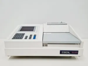 The Cecil CE 3041 3000 Series UV/Vis Spectrophotometer, originally part of a university laboratory, offers reliable performance for analytical and research applications. This unit is in good cosmetic condition and powers on successfully, although further testing was not possible at our facility. Notably, the spectrophotometer passed a comprehensive service in August 2023, ensuring its operational readiness. Included with this equipment is a set of X100 FisherBrand Cuvette Macro 4.0ml made of PS UV, ideal for various spectroscopic analyses.