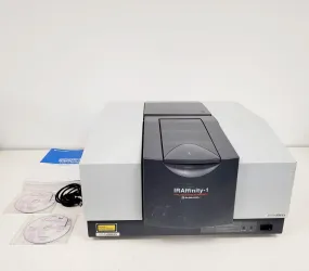 The Shimadzu IRAffinity-1 FTIR Spectrophotometer is a precision analytical instrument, previously used in an academic lab before becoming surplus to requirements. This unit has been confirmed in working order, although it has not been utilized routinely for a few years. It remains in excellent cosmetic condition, exhibiting only minor signs of usage. The package includes comprehensive manuals and software discs, featuring Shimadzu IR Solution version 1.50 and other essential guides, ensuring you have everything needed for efficient operation. This is a highly functional and reliable spectroscopic tool suitable for various research applications.