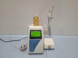 The SI Analytics TitroLine Easy Titrator is a sophisticated multi-parameter titrator designed for precision in laboratory analysis. Included in the package is the TM96 stirrer, enhancing functionality and ease of use. The device boasts a compact design with dimensions of 205 mm in depth, 310 mm in height, and 135 mm in width, and is lightweight at 2.4 kg. It operates on a power supply of either 230 V~; 50/60 Hz or 115 V~; 50/60 Hz, with a peak power consumption of 24 VA. The titrator is in very good working order, making it a reliable choice for laboratories seeking accurate and efficient analysis solutions.