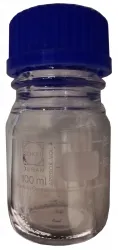 These Fisherbrand or Schott 100ml Reusable Glass Culture Flasks are crafted from borosilicate glass, known for its excellent thermal and chemical resistance. Each flask is graduated in 20ml increments, providing precise measurement capabilities. Enhanced with a GL 45 design, the flasks come equipped with a polypropylene (PP) anti-drip ring to minimize spillage. They are topped with a blue screw cap, which may show inscriptions indicating previous use, offering both reliability and cost-effectiveness for laboratory professionals. Available quantity: 52.