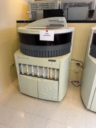 The Ventana Discovery Ultra is a high-capacity automated slide staining instrument designed for precise immunohistochemistry (IHC) and in situ hybridization (ISH) applications essential in molecular diagnostics and clinical pathology workflows. Featuring multiple reagent carousel positions accessible on the front panel, this system supports high throughput processing of tissue slides, enabling efficient and reproducible staining protocols critical in biomedical research and biopharmaceutical production pipelines.