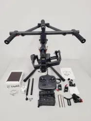 The DJI Ronin R-16 Camera Stabilization Gimbal System Kit is an advanced piece of equipment designed for professional camera stabilization. Previously part of a university's inventory, it is now available for acquisition. The kit is in excellent cosmetic condition and fully operational, although it has not been tested extensively at our facility. This comprehensive set includes a main remote controller (Model NDJ6), thumb controller with guide booklet, an iPad mini 2 (16GB, Model A1489) with charger and USB cable, a battery charger (Model MDA101168030001), a camera base plate compatible with RED, Canon, Blackmagic, and Nikon cameras, two batteries (Model No. 824380-3400mAh-14.8v), USB cable, power leads, a 3-axis small rig connector, two type A quick release mounts, and an accessory kit containing three Allen keys, four screws, and a locking tool. Also included is a Ronin-M hard carry case, user manual, and a stand. This equipment is ideal for capturing smooth, cinematic shots in various professional settings.