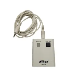 The Nikon DS-RC Remote Control is a specialized accessory designed for use with Nikon Digital Sight microscope camera systems. This remote control unit facilitates precise management of imaging parameters and camera functions, enabling users to optimize digital capture during microscopy workflows. Featuring compact and ergonomic design, the DS-RC is compatible with Nikon's advanced digital sight cameras commonly used in biotechnology, cell imaging, and molecular diagnostics applications. It supports remote operation critical for minimizing sample disturbance in live-cell imaging and fluorescence microscopy, making it integral to bioprocessing and synthetic biology research setups. Despite minor cosmetic wear, the device remains fully functional, providing reliable control in biomedical engineering and clinical diagnostics environments.