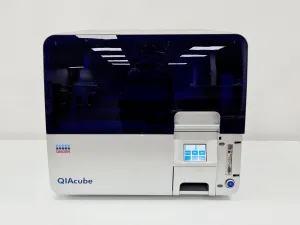 Qiagen QIAcube Automated DNA/RNA Purification Robot, once belonging to a university lab, is available for spares or repairs due to surplus requirements. It maintains good aesthetic condition both internally and externally, with the exception of a missing panel by the power button. The unit experiences Error 5167 during operation attempts, specifically when closing the centrifuge lid, as the lid remains open. An additional error indicates the cover opens before the lid can move. Further testing was not conducted, hence it is offered for spares or repairs.