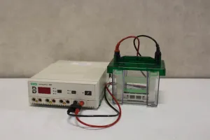 The Bio-Rad Mini-PROTEAN 3 Electrophoresis System offers a compact design with an overall size of 160 x 120 x 180 mm. It supports gel dimensions of 80 x 73 mm, perfectly compatible with Ready Gels. Designed for optimal functionality, the system can handle a voltage limit of 600 VDC and operates efficiently with a power of 75 W. With a fully adjustable voltage range of 10 V to 300 V and current control from 5 mA to 400 mA, precision is ensured. This system includes advanced features like automatic crossover for constant voltage and current. The convenient timer function allows for adjustments from 001 to 999 minutes. Built with 4 pair recessed female banana jacks, the unit offers safety and versatility. Engineered for stability, it maintains voltage to ±1 V and current to ±1 mA. This dependable system, weighing 1.8 kg and having dimensions of 290 x 210 x 80 mm, fits seamlessly into any lab setup for effective electrophoretic analysis.