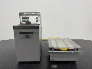 The GE Multiophor II Electrophoresis Unit combined with the Multitemp III Chiller provides a reliable horizontal gel electrophoresis system designed for controlled separation of nucleic acids and proteins. This integrated setup offers: