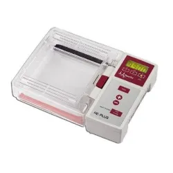 Designed for high efficiency, the HE-PLUS supports a 96-well format compatible with multichannel pipettes, making sample loading fast and accurate. Its durable polycarbonate tank and UV-transmitting construction allow clear monitoring throughout the run, while a vented lid reduces condensation. Safety is prioritized with a microsensor that prevents operation without the safety lid in place. Additional features like the memory function for last-used settings make it easy to set up repeat runs, ensuring consistent results with minimal prep time.