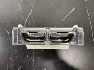 The Invitrogen Mini Gel Tank is a compact and efficient horizontal gel electrophoresis system designed specifically for molecular biology applications such as DNA and protein separation. Featuring dual gel compartments, this system enables simultaneous running of two gels, improving throughput in genetic analysis workflows. The tank includes a transparent clear lid for easy visualization of electrophoresis progress and ensures consistent electric field distribution during gel migration. Measuring 9.5 x 7.5 x 6 inches and weighing 2 lbs, it is ideal for laboratories requiring a space-saving electrophoresis apparatus without compromising performance. The integrated electrode assembly guarantees reliable conductivity and is compatible with standard gel combs typically used in molecular cloning workflows and gene editing research. This mini gel electrophoresis system is widely adopted by researchers in biotechnology, molecular diagnostics, and synthetic biology, where precise nucleic acid or protein separation is critical. It serves as an essential tool in bioprocessing pipelines and biomedical engineering applications, supporting accurate gel-based analysis and visualization techniques.