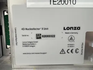 The Lonza 4D-Nucleofector System is a modular electroporation platform widely adopted in synthetic biology research and molecular diagnostics for efficient transfection of various cell types. This system includes the Core Unit (Model 4D-Nucleofector Core Unit, Serial No. 820B0307), along with the X Unit (Serial No. 820X0322) and LV Unit (Serial No. 920LV037), providing versatile nucleic acid delivery options essential for bioprocessing and gene editing workflows.