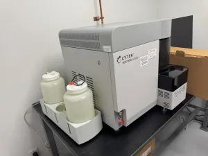 The system comprises the primary analyzer body paired with integrated fluid reservoir bottles, facilitating continuous sample processing and stable fluidics control. This configuration is widely adopted in biotechnology and molecular diagnostics workflows, supporting applications such as cell phenotyping, immunophenotyping, and bioprocess monitoring.