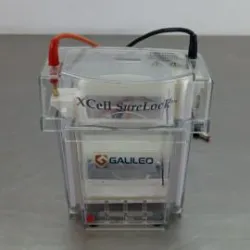 The Invitrogen XCell SureLock Mini-Cell Electrophoresis System ensures secure placement of gels without the risk of leaks, utilizing a tensioning wedge that eliminates the need for tweezers or grease. It can accommodate two 8x8 cm Novex pre-assembled gels. This vertical protein mini-gel electrophoresis system is designed to be compatible with all Invitrogen precast Novex minigels and Surecast handcast gels. Engineered for simplicity and durability, the Mini-Cell's gel tension wedge allows for quick and seamless gel installation, enhancing the ease of use and reliability for laboratory applications.