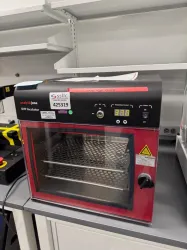 The Analytik Jena UVP Incubator is a precision laboratory incubator designed for controlled temperature applications in biotechnological and molecular biology research. It features a digital temperature display for accurate monitoring and a clear glass front door that allows for easy observation of cell cultures and samples without disrupting the environment. This benchtop incubator operates at 120 V, 60 Hz with a power consumption of 150 W and includes a fuse rating of 5 A. Manufactured in 2018, it provides a stable and uniform temperature environment essential for live-cell imaging, molecular diagnostics, and synthetic biology workflows. The internal shelving rack accommodates multiple sample containers, supporting applications widely used in bioprocessing, gene editing, and biomanufacturing pipelines. Its simple setup and robust temperature control make it a critical tool for researchers engaged in cell culture incubations and biomedical engineering experiments.
