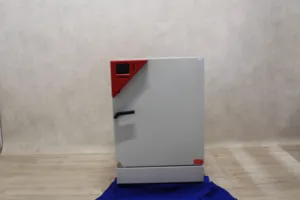 The Binder CB210 CO2 Incubator is a state-of-the-art solution designed for laboratory environments requiring precise control over temperature and humidity. With a rapid recovery time of 5 minutes after a 30-second door opening, the incubator swiftly stabilizes at 37°C. It offers a temperature fluctuation of ±0.1K and a range from 7°C above ambient to 60°C. The temperature variation at 37°C remains within ±0.4K, ensuring consistency for sensitive experiments. The unit features auto-sterilization through hot air at 180°C and maintains a humidity range of 90 to 95% RH using a double-pan humidification system with condensation protection. CO2 levels are accurately monitored using IR technology, with a range from 0 to 20 Vol.-% and a recovery time of 5 minutes after a 30-second door opening at 5 Vol.-%. Constructed with dimensions of 1070 x 740 x 715 mm, the internal space measures 750 x 560 x 500 mm, providing an ample capacity of 210 liters. Weighing 129 kg, this incubator is both robust and reliable for all your laboratory needs.