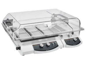 The small incubator hood comes with a total height of 163mm and is recommended especially for microtiter plates, culture plates, small flasks, media bottles and Erlenmeyer flasks up to 100ml. The transparent and non-fogging PETG material allows for sample viewing and is easily cleaned. Click Here to View Product Video