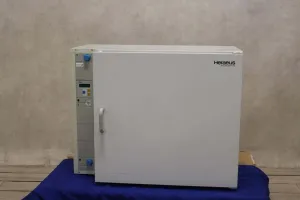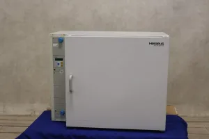 The Heraeus B6120 Incubator is crafted for optimal temperature control, reaching a maximum of 70°C. With an efficient warm-up time of 35 minutes to 37°C and up to 45 minutes to 70°C, it ensures reliable performance. Even with the door opened for 30 seconds, the incubator recovers swiftly within just 2 minutes. It features five air changes per hour with the air flap open, promoting even circulation. Temperature precision is maintained with fluctuations of ≤0.5°C, and spatial variation is ±1.1°C at 37°C, ±1.6°C at 50°C, and ±2.5°C at 70°C. The model supports a maximum load of 50 kg, with each shelf capable of holding up to 10 kg, within its 107-liter volume capacity. Its internal dimensions are 370 x 554 x 524 mm, while the overall dimensions stand at 610 x 895 x 696 mm, making it a robust choice at 69 kg. Heraeus ensures cutting-edge performance for any laboratory setting.