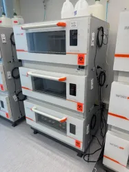 The Infors HT Multitron Triple Stack I80002 Incubator Shaker is a high-performance laboratory instrument designed for controlled temperature incubation and orbital shaking. It features a triple stack configuration with three independent chambers, allowing simultaneous, versatile experiments in biotechnology, molecular diagnostics, and synthetic biology research. Each chamber includes green platform trays for secure sample placement, optimizing space utilization in bioprocessing laboratories.