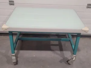 This mobile table is designed for BINDER incubators, measuring 83 x 60 x 50 cm, crafted with enamelled glass for durability and ease of cleaning. Suitable for BINDER models BD, FD, and KB 115, the table features two protected corners as shown in provided photos. Equipped with four wheels, it offers mobility for laboratory flexibility, although currently in average condition.