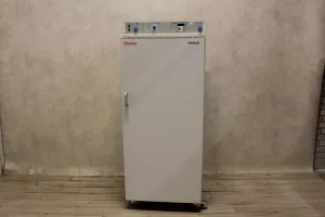 The Thermo B 6420 Incubator offers precise temperature control, ranging from ambient +5°C to 70°C, ensuring an accurate environment for experimental requirements. At 37°C, it maintains a spatial temperature deviation of ±0.6°C, with a variance over time of ±≤0.5°C. Its internal dimensions span 550 x 1360 x 550 mm, housed in an overall structure measuring 745 x 1810 x 790 mm and weighing 157 kg. This incubator is ideal for applications requiring consistent temperature stability and ample space.