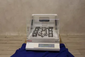 The Thermo Forma 420 Shaking Incubator offers a temperature range from ambient +5 to 80°C with a control range of 0.1°C. It ensures superior temperature uniformity: 0.2°C at 37°C, 0.6°C at 60°C, and 1.0°C at 80°C. Its shaking speed varies from 25 to 525 rpm, with an accuracy of 1 rpm providing consistent agitation. The instrument has a 1-inch orbit motion. Measuring 523 x 320 x 521 mm internally, it maintains a compact footprint with total dimensions of 617 x 531 x 737 mm and a weight of 84 kg.