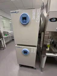 The VWR Basic Double Stack CO2 Incubator is a laboratory-grade incubator designed for precise cell culture and tissue culture applications commonly used in biotechnology and molecular biology research. This double stack incubator features two independent chambers, allowing parallel processing of experiments with controlled atmospheric conditions. Key technical features include: