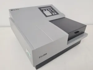 The BioTek ELx808 is an absorbance microplate reader, originally acquired from a university as surplus equipment. It is in good cosmetic condition and powers up successfully; however, further testing hasn't been conducted. The original dust cover is included, but the power supply unit (PSU) is not provided.